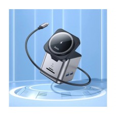 USB-хаб Hoco HB49 Effortless 9 in 1 с беспроводной зарядкой Metal gray