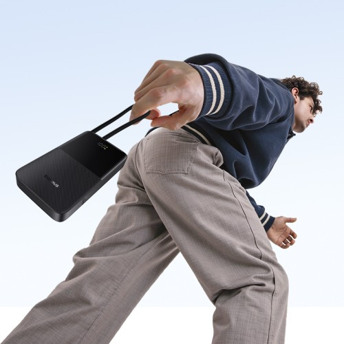 Потужний повербанк із вбудованим кабелем та цифровим дисплеєм, який дозволяє заряджати кілька пристроїв одночасно з максимальною зручністю.